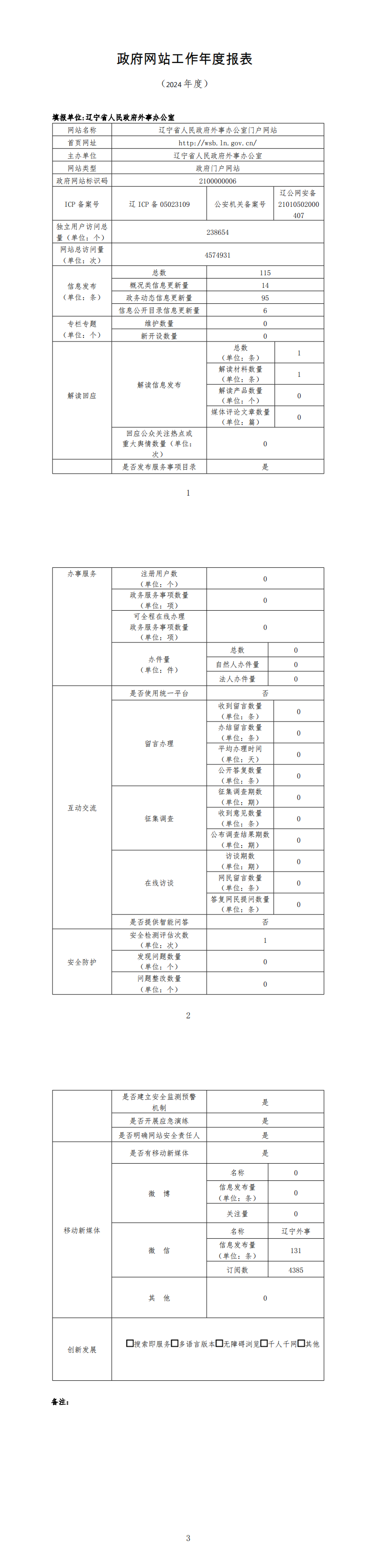 辽宁省人民政府外事办公室2024年度政府网站工作年度报表