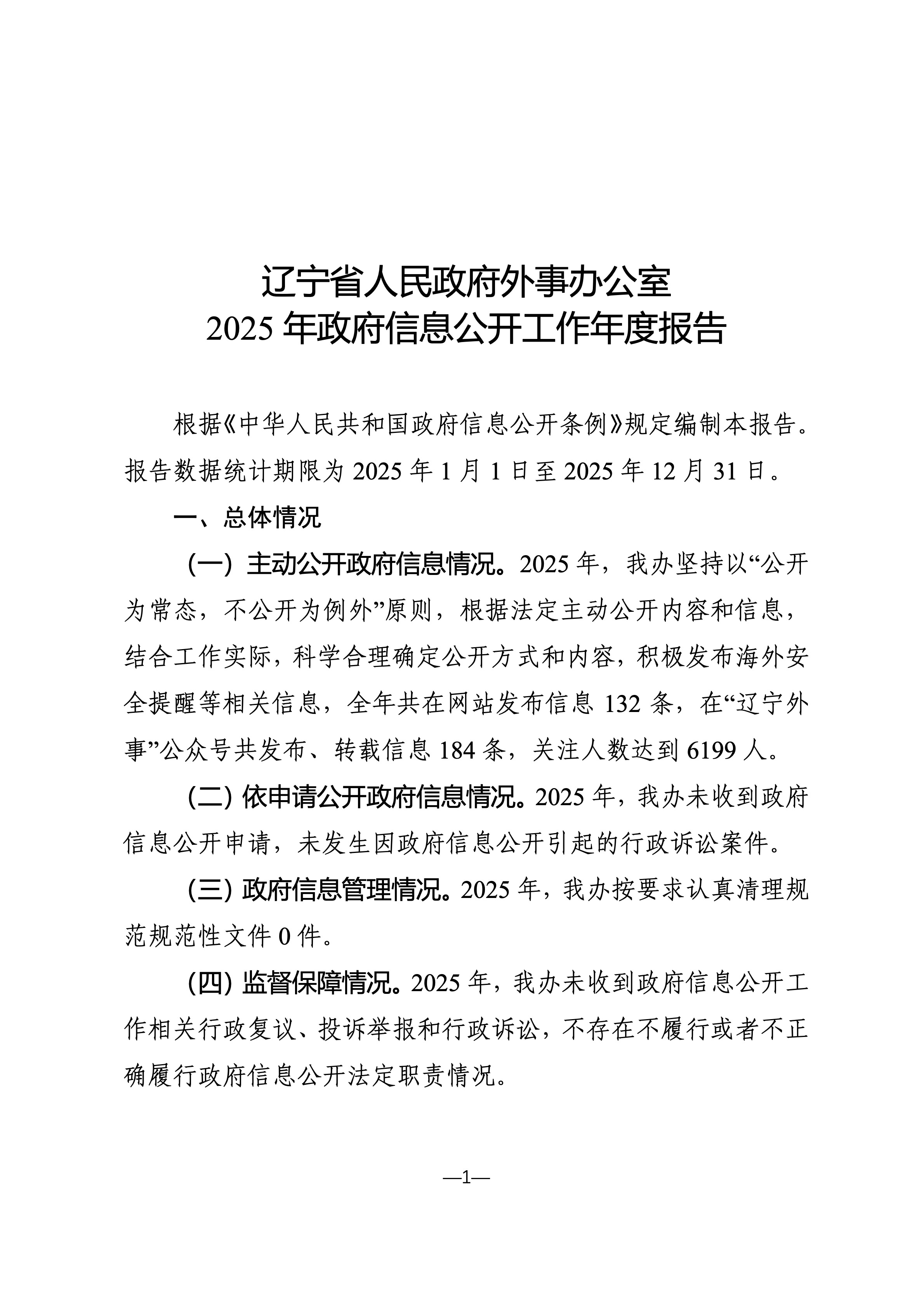 辽宁省人民政府外事办公室2025年政府信息公开工作年度报告